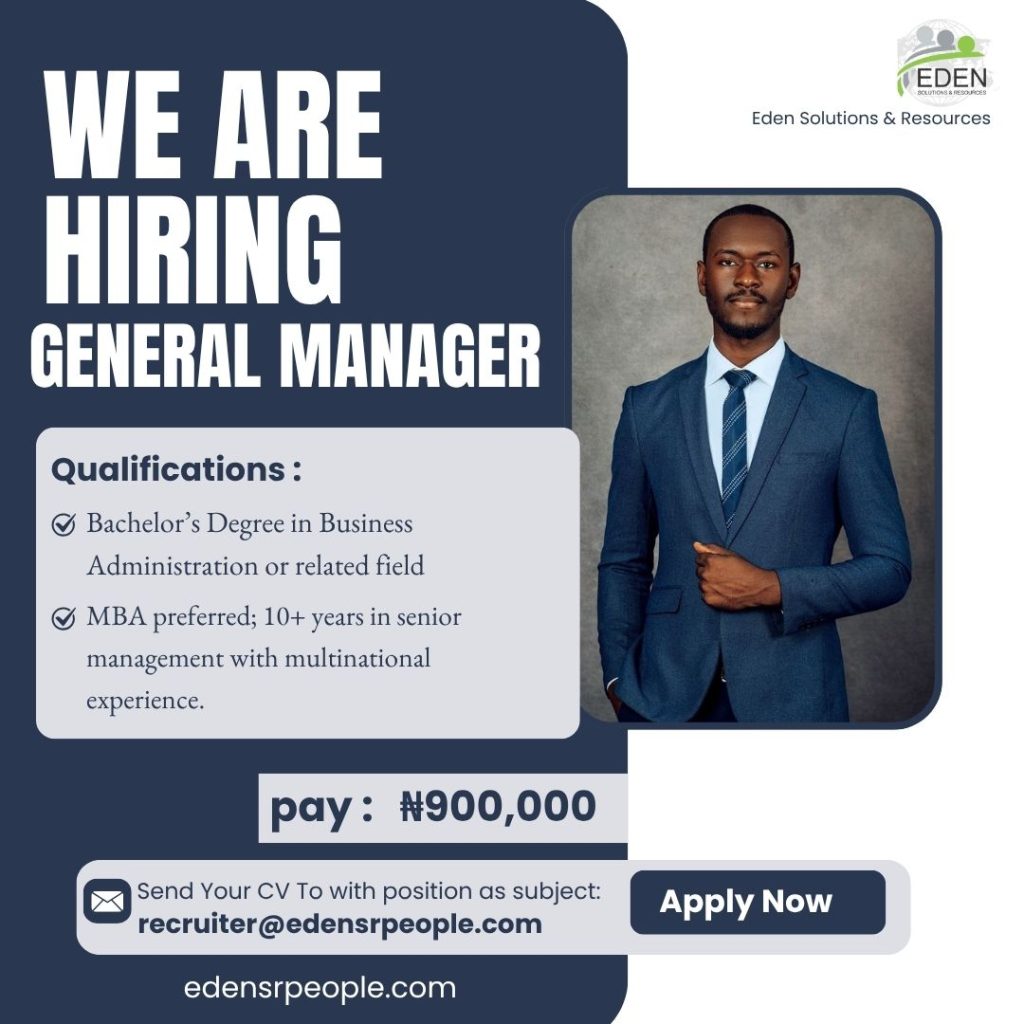 Our client, a reputable organization, is seeking a General Manager to provide strategic leadership, oversee business operations, and ensure the achievement of organizational goals and performance targets