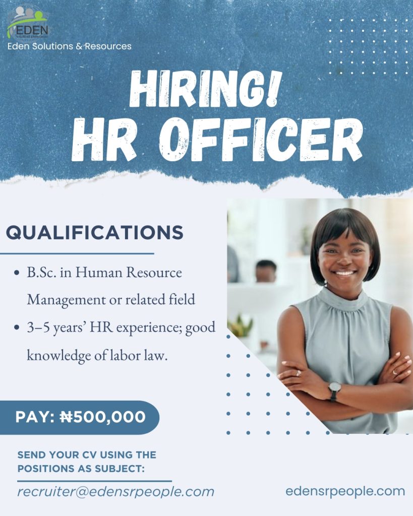 Our client, a reputable organization, is seeking a Human Resources Officer to manage recruitment, employee relations, performance management, and HR policy implementation, ensuring effective people management and organizational development