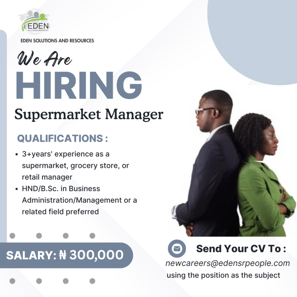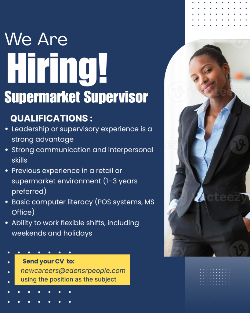 Our client, a reputable establishment in the hospitality industry, is currently hiring for the following positions: Supermarket Supervisor